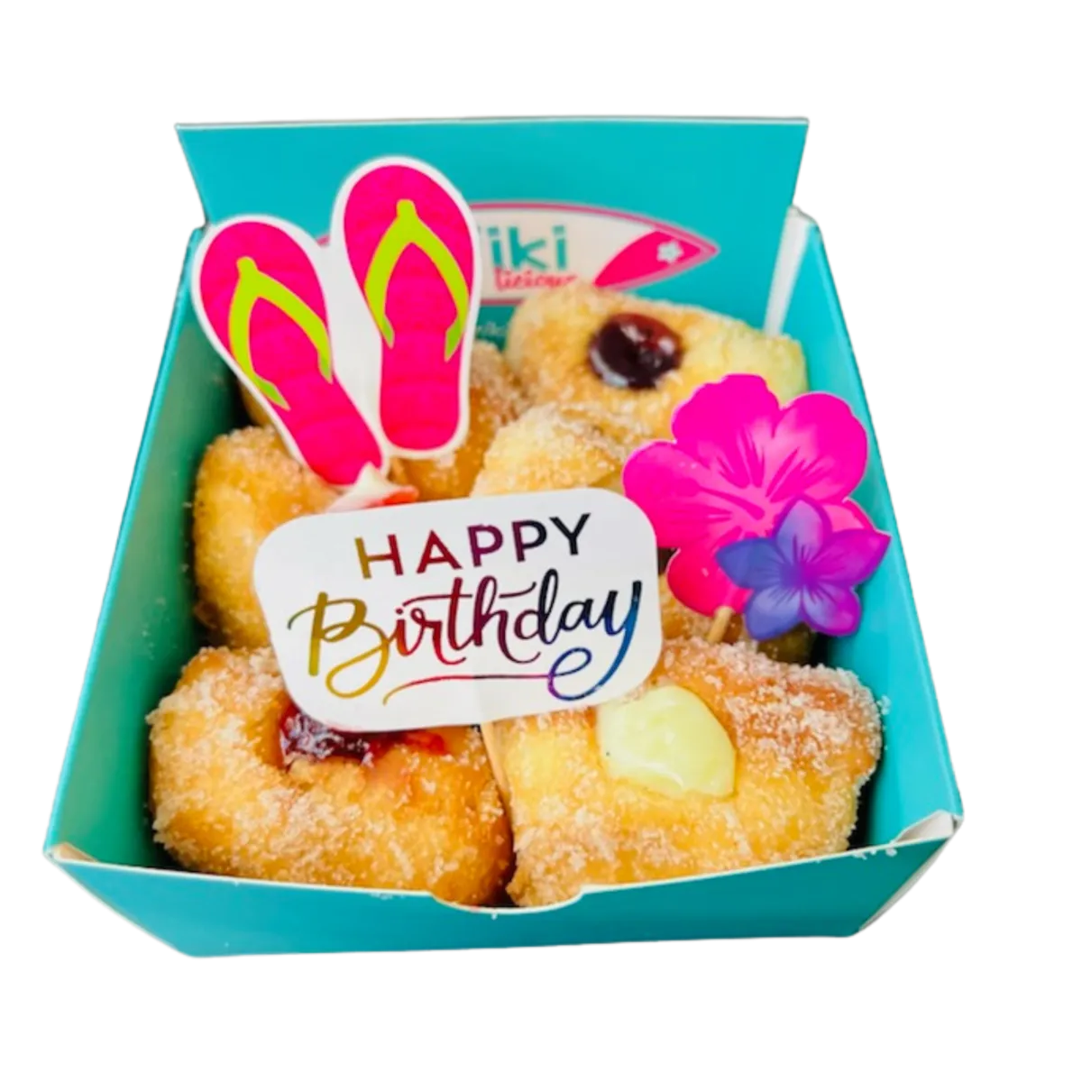 Bring a sweet twist to any event with our malasada party boxes, each loaded with 70 pillowy mini malasadas. Choose up to seven flavors from sugar-dusted classics to creamy custards or tropical fillings and watch guests delight in every melt-in-your-mouth bite. At just $100.00, these freshly made treats are perfect for birthdays, office gatherings, and beyond!
